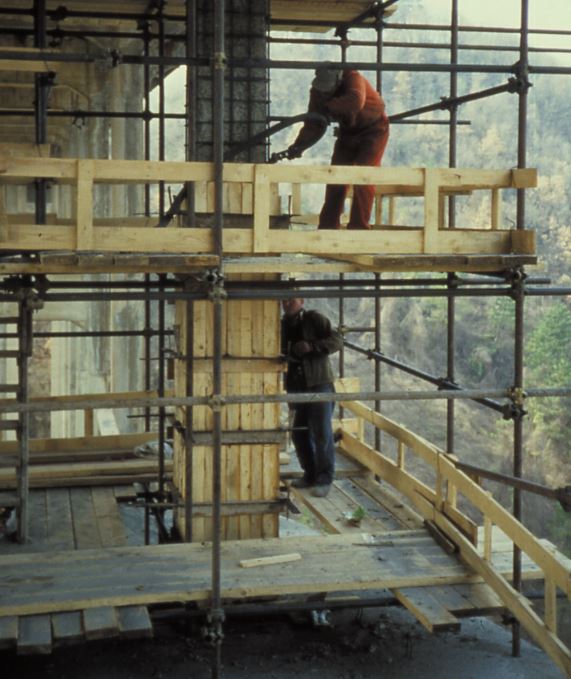 Nella fase esecutiva del restauro, date le difficoltà operative per la messa in opera del calcestruzzo entro spazi esigui (5-10 cm), spesso congestionati dalla presenza di ferri integrativi accanto a quelli originali, è necessario porre molta attenzione nella posa in opera e nella compattazione del calcestruzzo (§ 6.4) per il restauro di strutture degradate che generalmente presenta difficoltà molto maggiori di quelle che si incontrano nella messa in opera di nuove strutture.